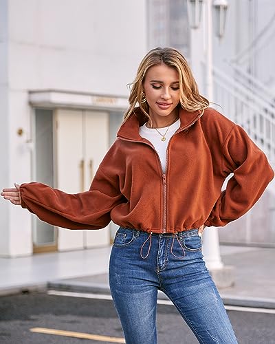 Fuinloth Women's Fleece Crop Jacket, Oversized, High Stand Collar Long Sleeve Coat 6