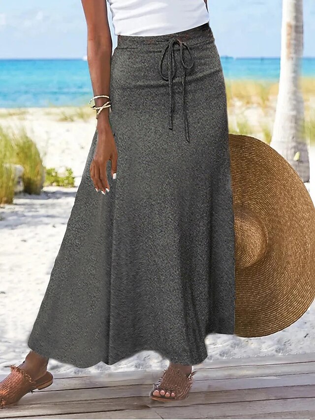 More information about Women's Long Skirt Skirts Split Ends Solid Colored Daily Vacation Spring & Summer Cotton coastal grandma style Basic Casual Mermaid Black Grey