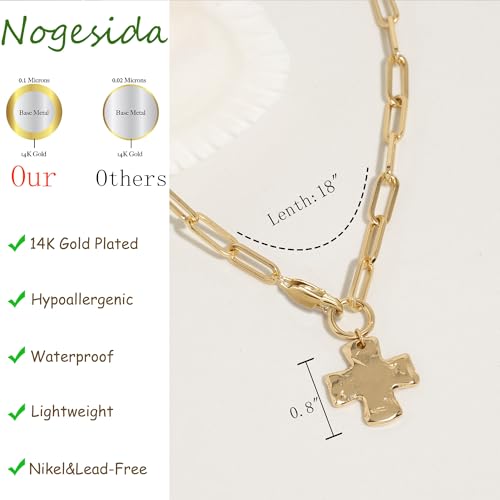 More information about Chunky Cross Necklaces for Women, 14K Real Gold Plated Statement Simple Dainty Pendant Necklace Trendy Charm Choker Paperclip Chain Necklace Body Summer Beach Jewelry