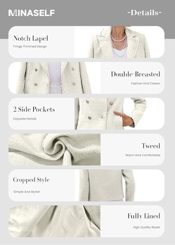 Mina Self 2025 Fall Women's Tweed Blazer Jacket - Fashion Warm Fully Lined Elegant Trendy Casual Cute Coat with Pockets 6