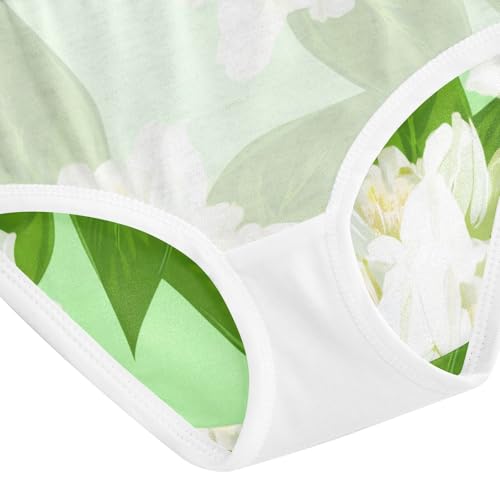 White Jasmine Flowers Green Girl Panties Cute Toddler Underwear Custom Cotton Aesthetic Briefs Undies Kids 2t