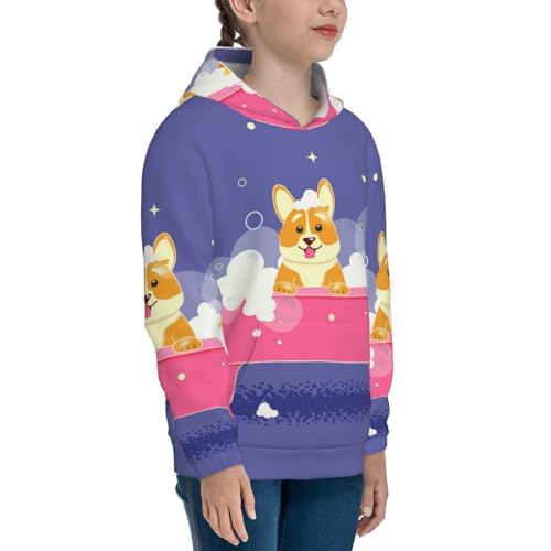 Dog Washes in a Pink Bath Kid Hoodies Boys Sweatshirts Girls Pullover with Pocket