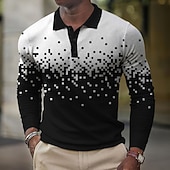 More information about Men's Geometric Golf Shirt Long Sleeve Polo Shirts Collared Shirts Casual Vacation Wear Formal Wear Festival Wear Buttons 3D Print Spring Fall Winter Black