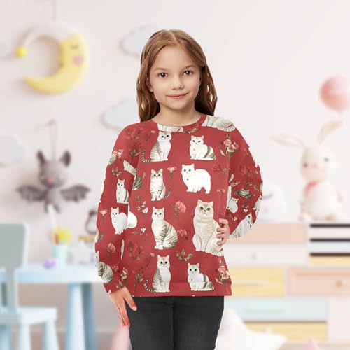 JUNZAN Sweet Scottish Fold Cats Red Kids Boys Sweatshirt Hoodie Crewneck Tops Clothing Shirts Athletic 4T 6