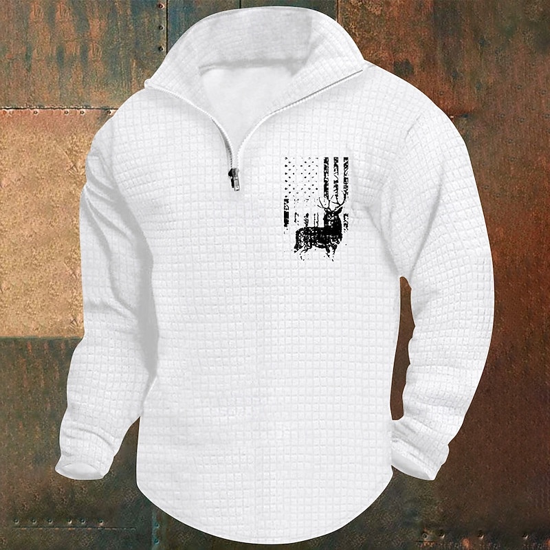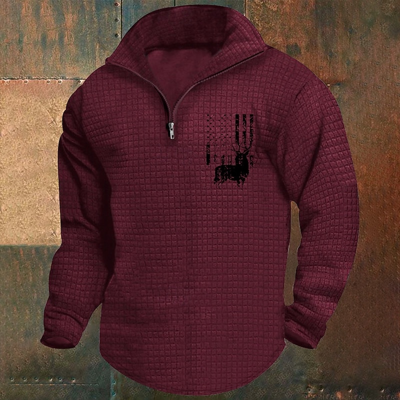 More information about Men's Sweatshirt Waffle Sweatshirt Quarter Zip Sweatshirt White Wine Army Green Khaki Light Grey Half Zip Graphic Print Print Quarter Zip Christmas Daily Holiday Other Prints Polyester Streetwear