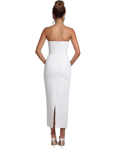 More information about Azhong Women's Summer Strapless Sleeveless Tube Sexy Strapless Bodycon Midi Club Dress Back Slit Club Party Dresses