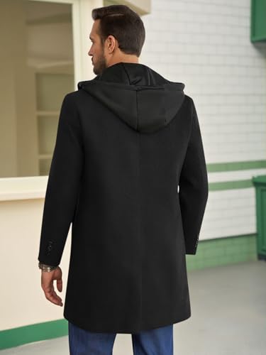Runcati Mens Trench Coat Single Breasted Mid-Long Pea Coat Classic Winter Business Jacket with Detachable Hood 1