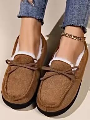 • Fashion-Forward Design & Cozy Comfort: These slippers feature a classic moccasin design with a modern twist, similar to premium suede-style loafers. The sleek bow detail adds an elegant touch, making them perfect for lounging at home or running quick errands.