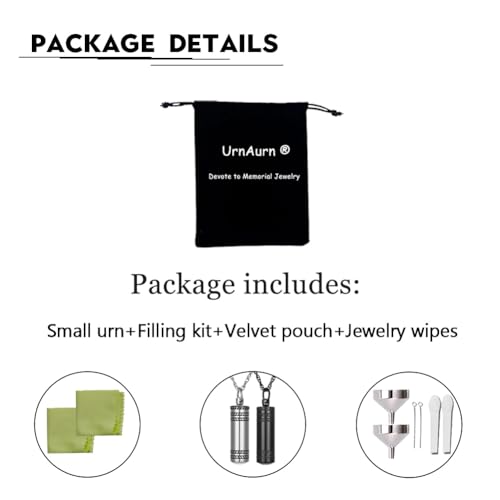 • 【Size & Material】Cylinder ashes necklace: 2.8cmx1.1cm(1.1"x 0.4"); Cremation jewelry chain:50+5cm(20+2"). Pendant & chain are made from highest quality medical grade Stainless steel, never rust, corrode, rust or stain.