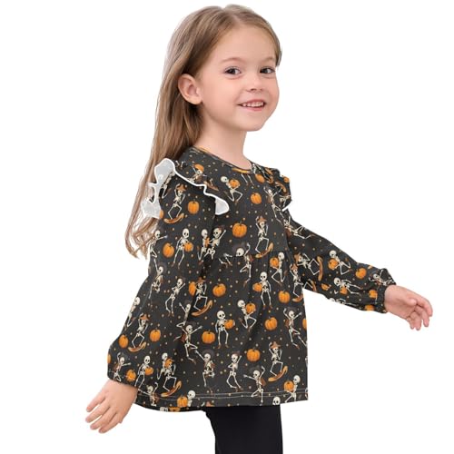 Skull Pumpkin Star Halloween Girls Shirts Cotton Long Sleeve Ruffle Toddler Tee Tops