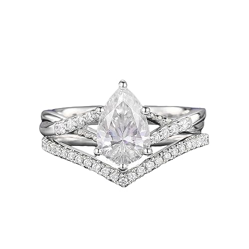 1.35 CT Pear Shaped Wedding Ring Set Engagement Rings For Women Pear Cut Twisted Bridal Sets Wedding Ring 925 Sterling Silver 10K 14K 18K Gold Anniversary Promise Ring