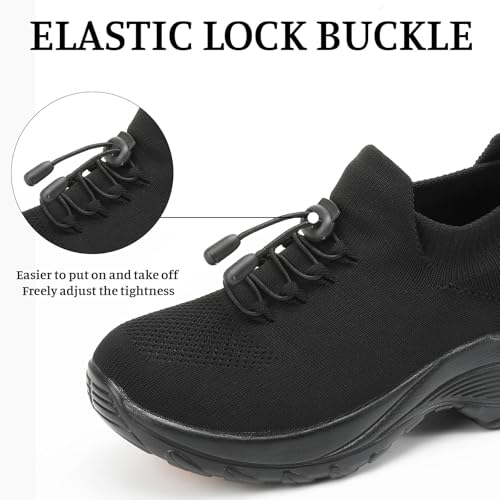 Comfortable Breathable Women Walking Shoes Unisex Orthopedic Shoes Comfortable Stretch Air Cushion Slip on Trainers Athletic Walking Trainers Thick Bottom Sock Sneakers 3