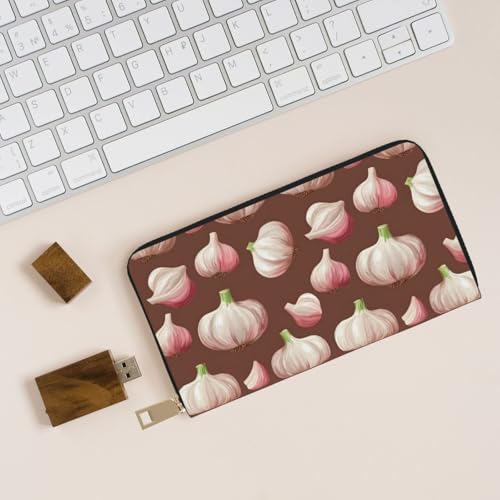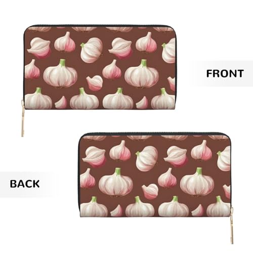 Leather Thin Slim Wallets for Women & Men - Realistic Garlic Print Card Wallet Holder with Zipper 1