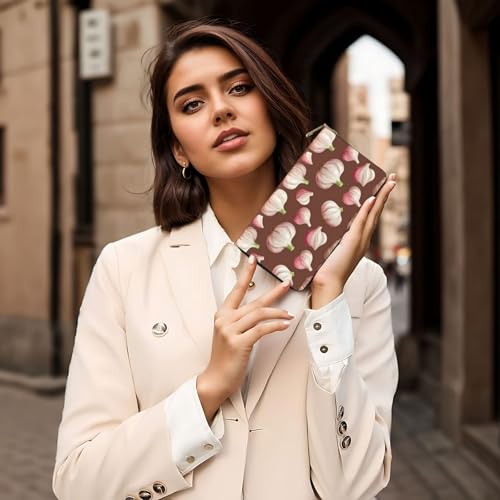 Leather Thin Slim Wallets for Women & Men - Realistic Garlic Print Card Wallet Holder with Zipper 7