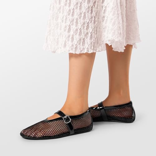 • Edgy Fishnet Design: Make your fashion statement with these women's mesh ballet ballet flats this summer. The fishnet design adds a touch of allure while the synthetic leather trim infuses a hint of sophistication.