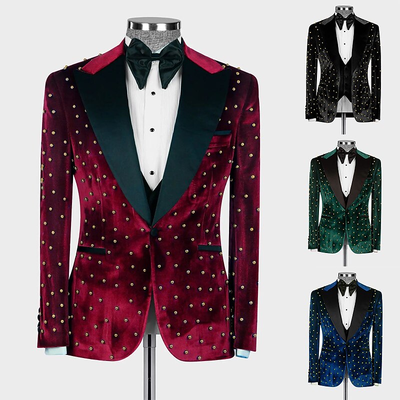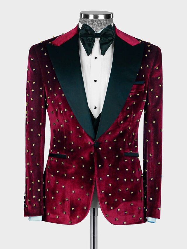 More information about Men's Blazer Jacket Tuxedo Closure collar Casual Velvet Pattern Black Burgundy Blue Tailored Fit Single Breasted One-button
