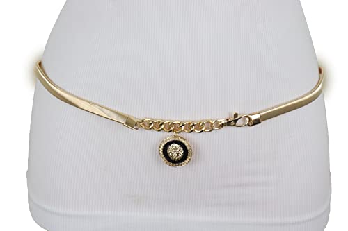 Women Gold Skinny Fashion Belt - Waist Hip Metal Elastic Band Lion Coin Charm Adjustable M L XL 3