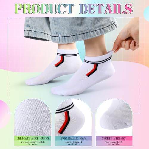 Fabric type: CottonCare instructions: Machine WashOrigin: ImportedFit type: RegularVariety of Colors: we use a series of sorbet colored yarns to make these ankle socks; You will receive 20 pairs of ankle socks in different colors, bright colors, not easy to fade, sufficient quantity to meet your daily exercise use and replacement needsBreathable Mesh Moisture Wicking: these colorful cotton socks feature a mesh design that allows ventilation to release heat, wick away sweat and allow your feet to stay dry and cool whether you are running or hiking; These invisible socks are suitable for all seasons.Machine washable, tumble dryer safeComfortable Feeling: our colorful ankle socks are made of cozy cotton material, with elastic wide sock surface to help relieve pressure, provide you with maximum comfort, suitable for most peopleWide Applications: in addition to exercise and sports, these athletic ankle socks are also good everyday casual socks for a variety of occasions; Suitable for running, hiking, cycling, climbing, etcIdeal Gift: these cotton athletic socks are suitable for both men and women, and are a good holiday gift choice; You can give them to your family, friends and partners on special days such as Mother's Day, Christmas, wedding anniversaries, graduation ceremonies, etc Perfect for everyday use. superior materials and excellent craftsmanship ensure long-lasting durability.