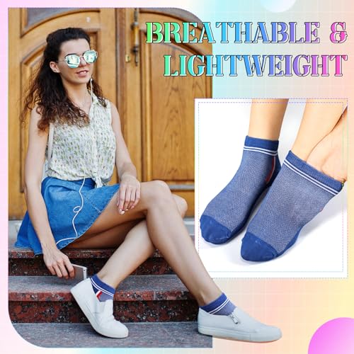 20 Pairs Women's Athletic Ankle Socks Cotton Low Cut Colorful Casual silky Stripe Lightweight Socks for Running Sports Hiking