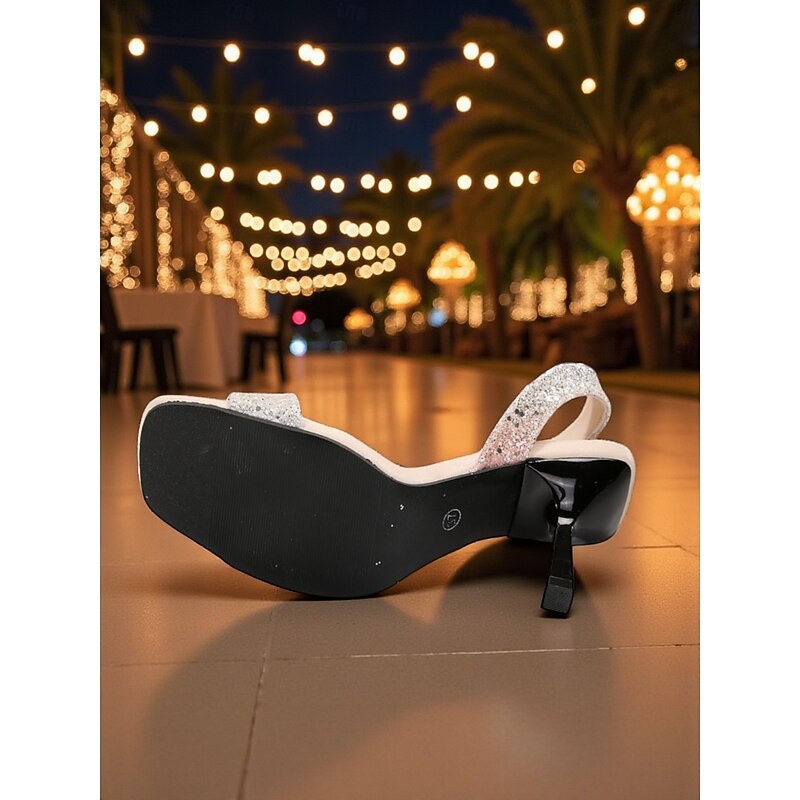Highlights - Includes shimmering sparkling glitter on the upper materials for a glamorous touch - Crafted with high-quality synthetic leather lining materials for a luxurious feel - Features an alluring open toe design for a stylish look - Durable rubber outsole materials for long-lasting wear and comfort.