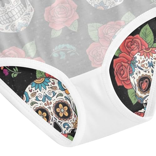 Colorful Skulls Vibrant Floral Black Toddler Underwear Floral 2t Cotton Panties for Girl Funny Kids Undies Briefs 4