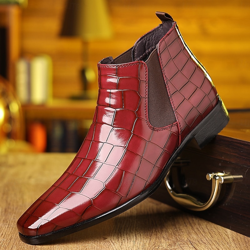 More information about Men's Black Crocodile Pattern Faux Leather Chelsea Boots - Elegant Slip-On Ankle Boots for Formal and Business Wear
