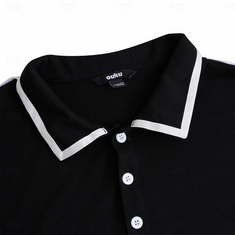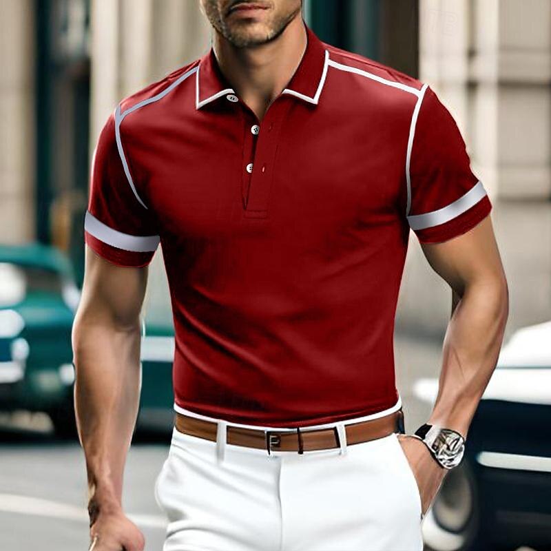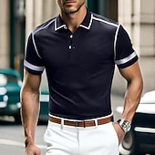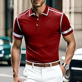 More information about Men's Polo Business Polo Business Casual Lapel Classic Short Sleeve Color Block Button Summer Spring & Fall Matt black Burgundy Navy Blue Polo
