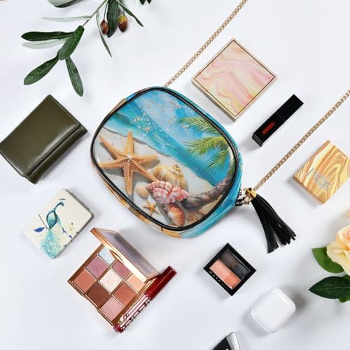 ALAZA Women's Funny Starfish Summer Beach Seashells Sand Palm PU Leather Crossbody Bag Shoulder Purse with Tassel 1