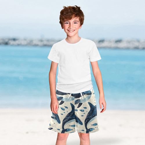 OREZI Boys Swim Trunk Shorts Watercolor Blue Whale Bathing Suit for Kids Teens 4