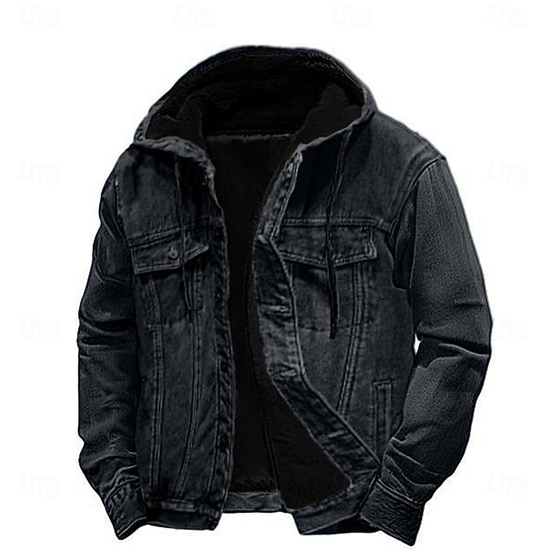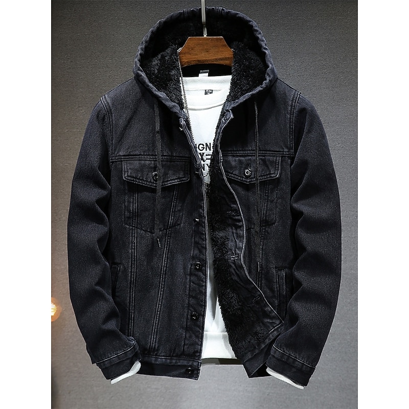 This Men Fleece Jacket Denim Jacket Casual Thermal comfortable Windbreaker Hooded Winter Solid Color Casual Hooded Regular Black Blue Jacket combines elegant design with practical functionality. Every detail has been carefully considered to ensure you get the best possible experience. The superior construction means this product will serve you well for years to come.