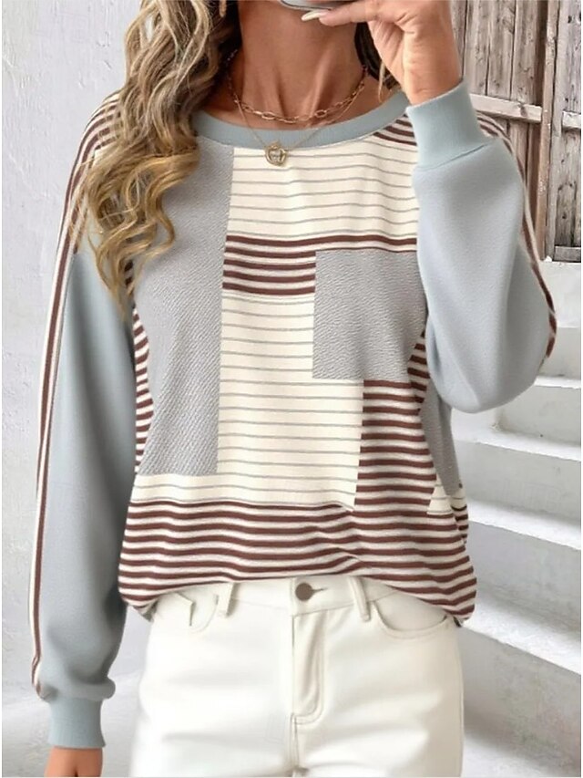Women's Pullover Sweatshirt Graphic Geometric Color Block Fashion Casual Long Sleeve Crew Neck Regular Tops Street Dailywear Casual Print Black Red Khaki Gray Fall Winter 10