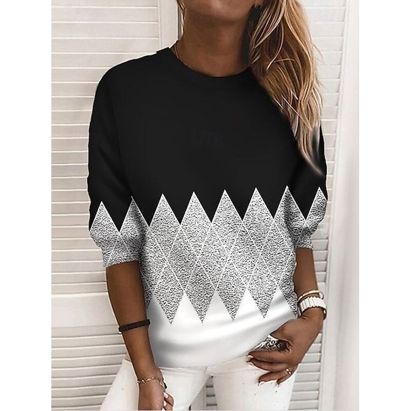 More information about Women's Pullover Sweatshirt Graphic Geometric Color Block Fashion Casual Long Sleeve Crew Neck Regular Tops Street Dailywear Casual Print Black Red Khaki Gray Fall Winter