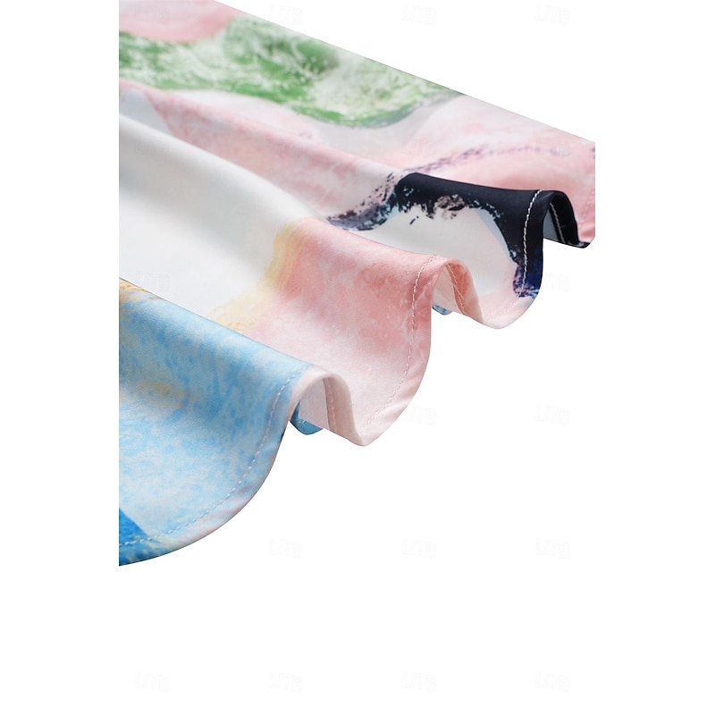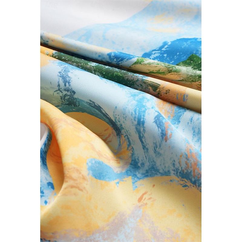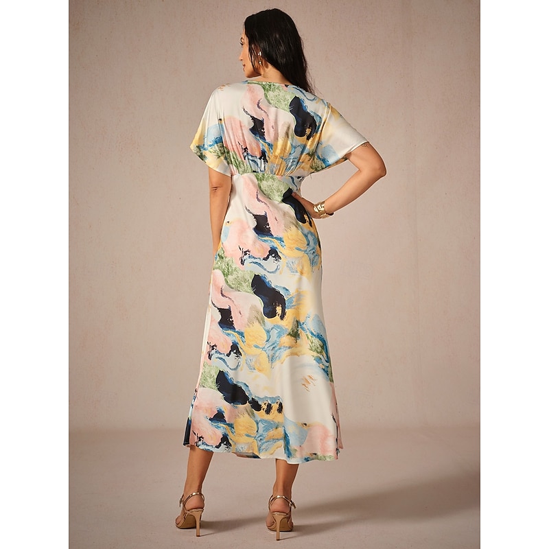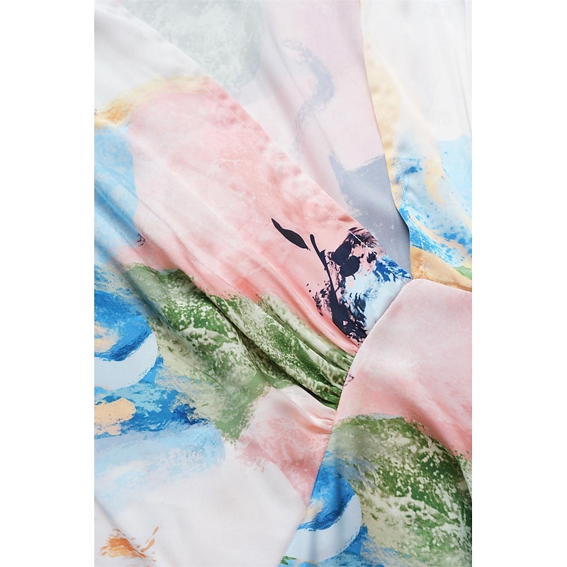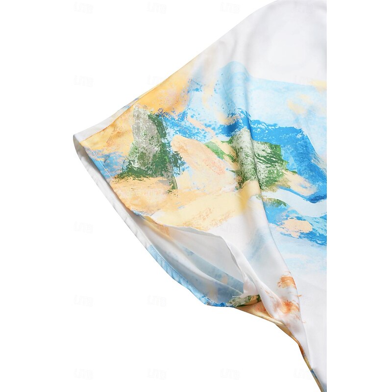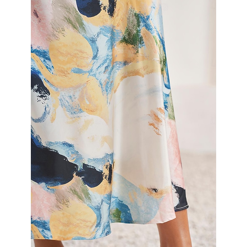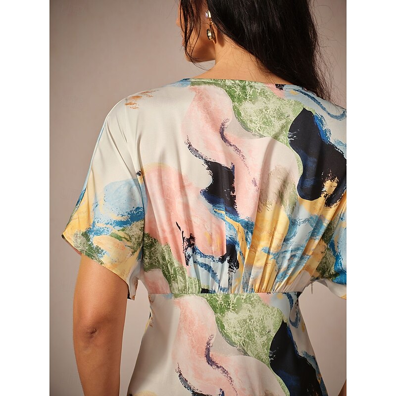 Highlights [Fabric & Material] Crafted from high-quality satin, this dress is lightweight and breathable, perfect for warm summer days. The satin fabric offers a smooth and luxurious feel, ensuring comfort and a slight stretch for ease of movement. [Fit & Silhouette] Designed with a loose A-line silhouette, this dress provides a flattering fit that gently skims the body. The cut offers elegance and comfort, making it ideal for a variety of body types. [Design Highlights] Featuring a sophisticated V-neckline and short sleeves that drape gracefully over the shoulders, this dress boasts a stylish tie-dye print. The watercolor-inspired abstract design in shades of blue, white, and purple adds a unique artistic touch. [Occasions] Ideal for daily wear, this elegant dress suits both casual outings and more formal occasions. Whether you're attending a summer garden party or enjoying a relaxed evening with friends, this dress provides versatility and charm. [Size Range] Available in sizes S, M, L, XL, and 2XL, this dress offers a comfortable fit for a broad range of body shapes, ensuring every woman can find her perfect size.