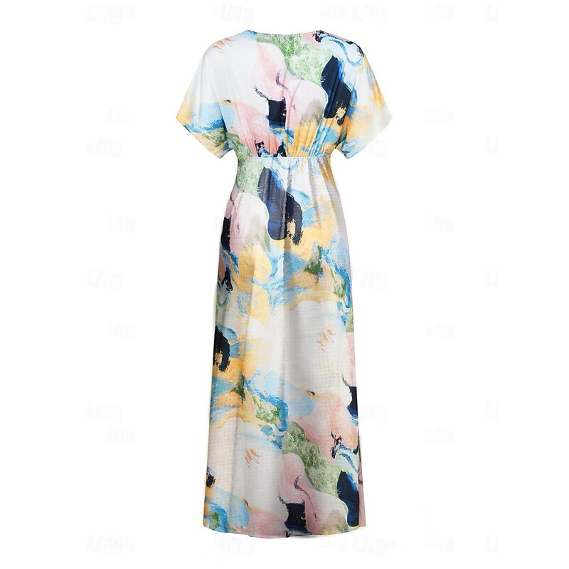 Women's Wedding Guest Dress Elegant Tie Dye Maxi Dress Short Sleeve V Neck Print Loose Fit Daily White Blue Purple Summer Dress 9
