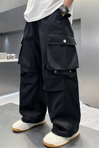 SANGTREE Boys Baggy Cargo Pants High Elastic Waist Parachute Pants with Pockets, 4-14 Years 7