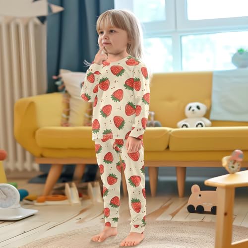Pajama Sets Long Sleeve Fruit Sweet Strawberry Pattern silky Comfy Sleepwear 2 Piece PJS 3-8T