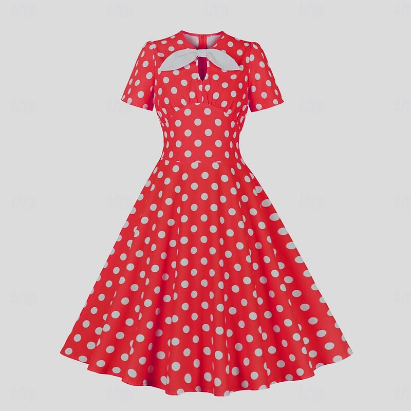 More information about Retro Vintage 1950s Rockabilly Midi Swing Dress Flare Dress Polka Dot Round Neck Fancy Dress Women's Vacation Casual Retro Theme Party Adults Dress Spring & Summer