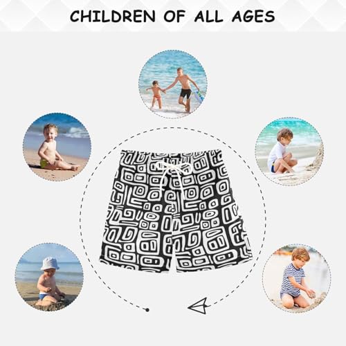 Boys Swim Trunks Black White Geometric Design Beach Board Shorts Quick Dry Swimsuit Toddler Kid Teen 4