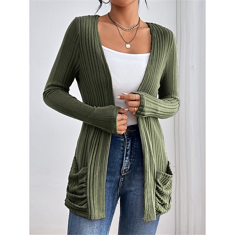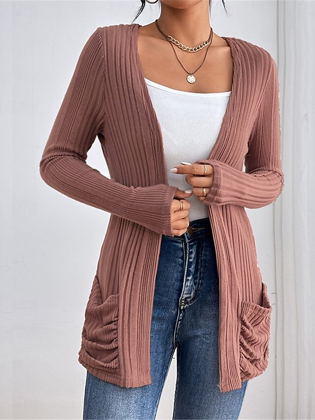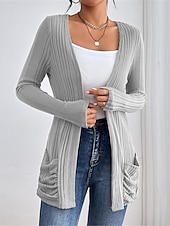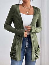 More information about Women's Coat Outdoor Street Daily Wear Fall Winter Regular Coat Regular Fit Thermal Warm Breathable Stylish Casual Jacket Long Sleeve Plain with Pockets Black Pink Green