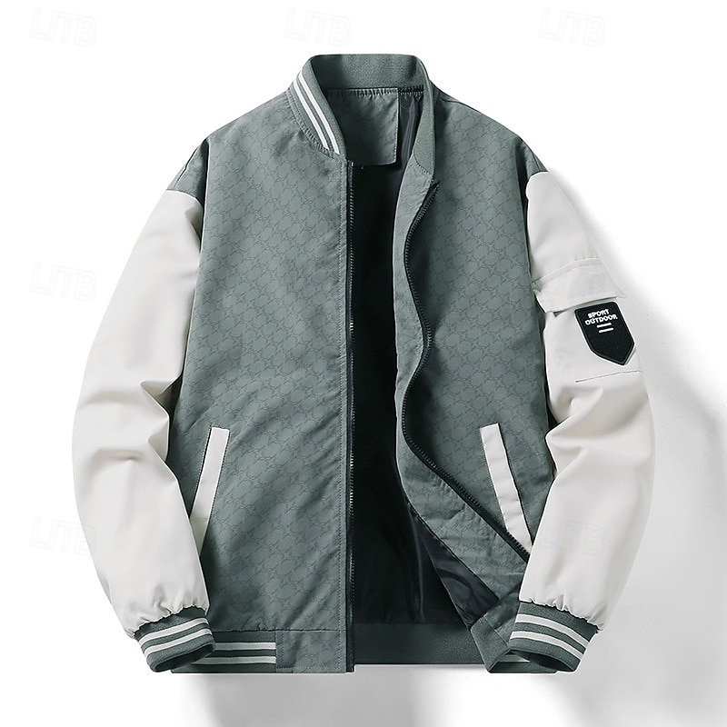 More information about Men's Lightweight Jacket Bomber Jacket Formal Home Windbreaker Pocket Spring Fall Solid Color Active Neutral Shirt Collar Regular Black White Green Jacket