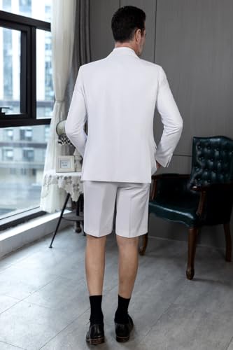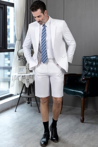 Mens Shorts Suit Casual Grooms Beach Wedding Slim Fit Tuxedo Suit Blazer & Shorts Set 7