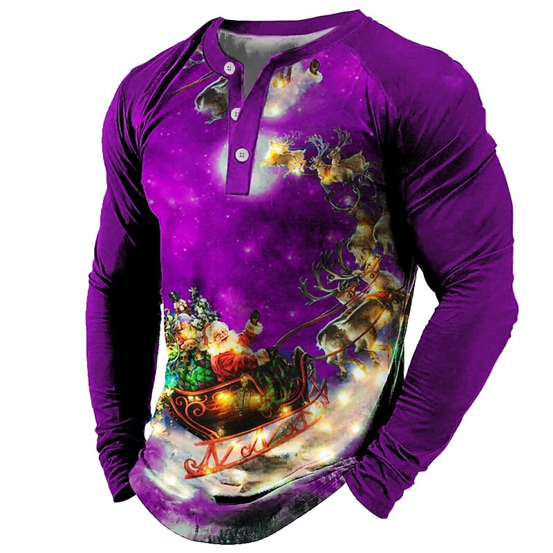 HOT ! Christmas Men's Santa Claus Henley T Shirt Henley Tee Tee Graphic Santa Claus Henley Sea Blue Green Black Blue Purple 3D Print Outdoor Long Sleeve Patchwork Button-Down Clothing Apparel Basic