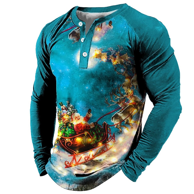 $24.99 - Christmas Men's Santa Claus Henley T Shirt Henley Tee Tee Graphic Santa Claus Henley Sea Blue Green Black Blue Purple 3D Print Outdoor Long Sleeve Patchwork Button-Down Clothing Apparel Basic 2025. Shop for cheap Christmas Light Outfit online? Buy at lightinthebox.com on sale today!