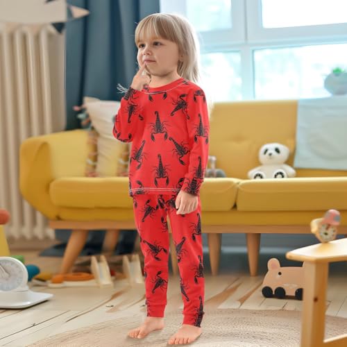 Pajama Sets Long Sleeve Black Scorpions on Red Soft Comfy Sleepwear 2 Piece PJS 3-8T 3