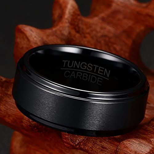 Bible Verse Religious Cross Tungsten Carbide Ring Step Edge Design Frosted Personalized Cross Wedding Band for Men & Women, 8MM/Size 7-12