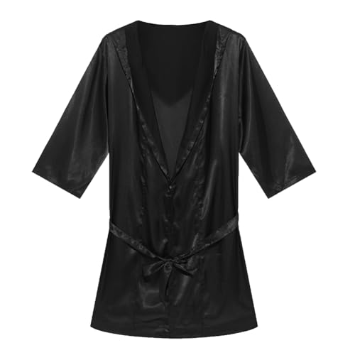 • Men's Satin Pajama Robe Bathrobe : Mens shiny satin robe hooded nightrobe short sleeve hoodie robe sleep top sleepwear nightshirts with Removable satin belt.