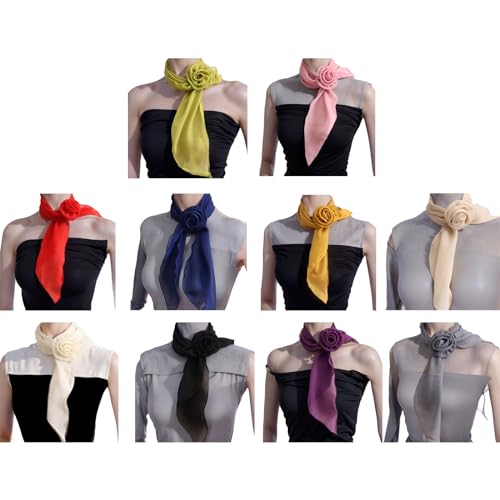 Rose Flower Silk Scarf for Women Style Necktie Decorative Neck Scarf Elegant Handtied Neck Scarf Triangle Scarves.Off White 6
