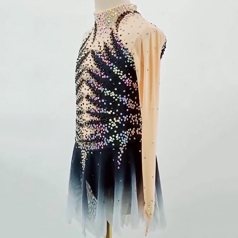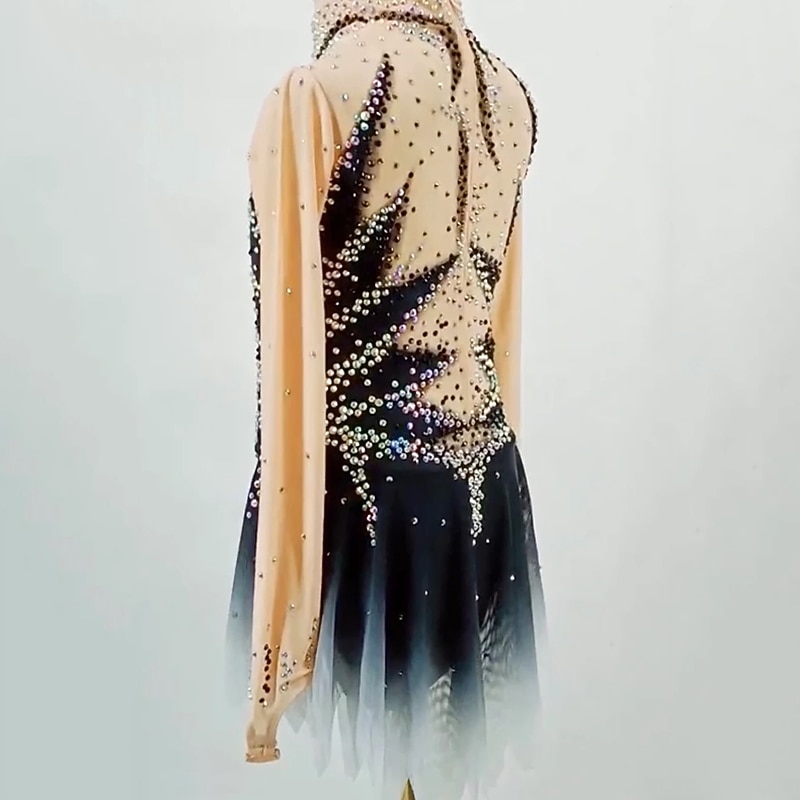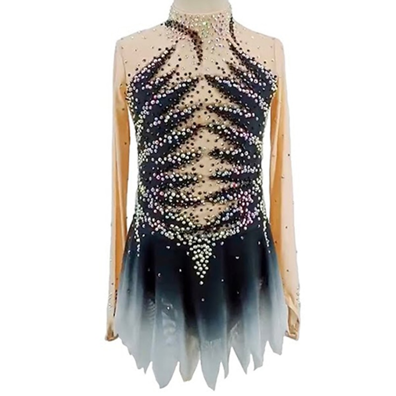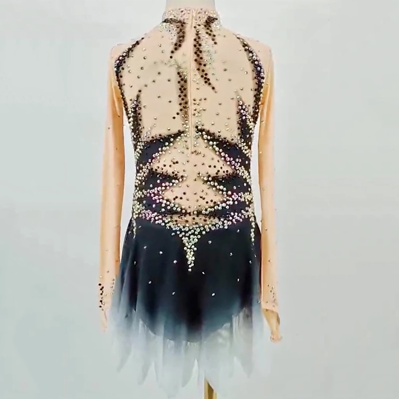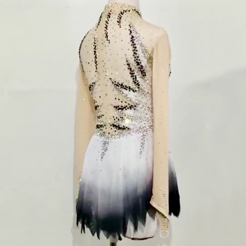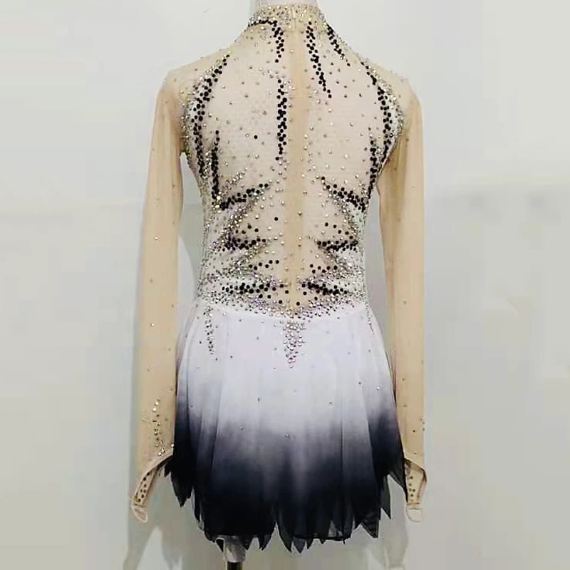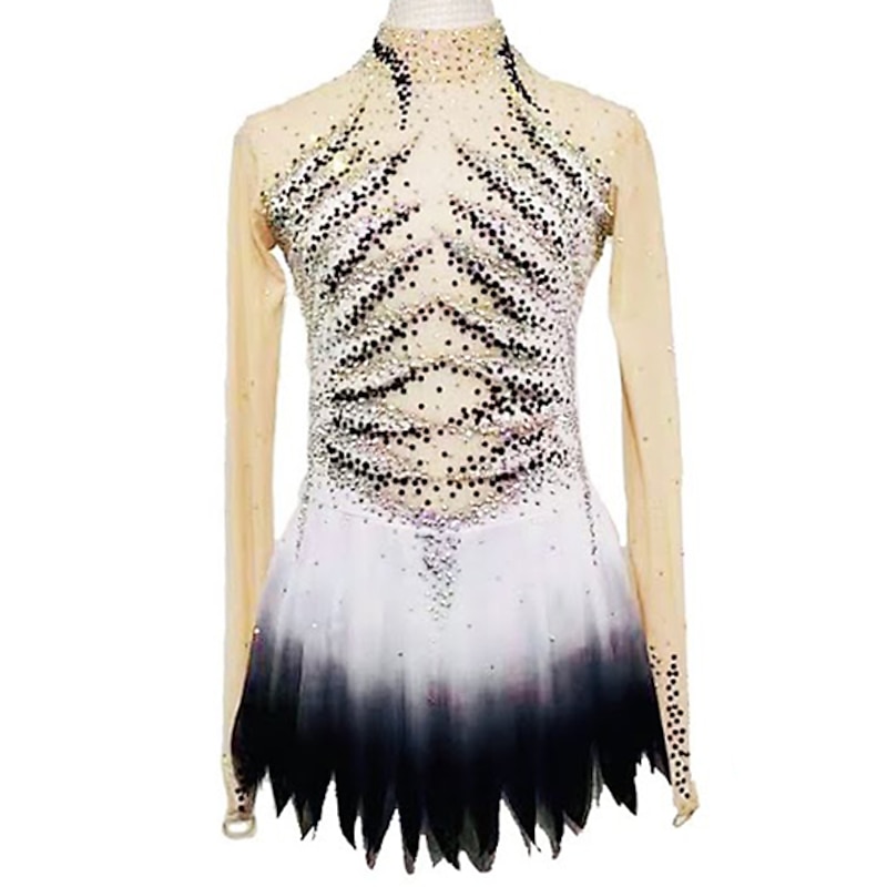 More information about Figure Skating Dress Women's Girls' Ice Skating Dress Outfits Black White Mesh Spandex High Elasticity Competition Skating Wear Handmade Crystal / Rhinestone Long Sleeve Ice Skating Figure Skating