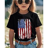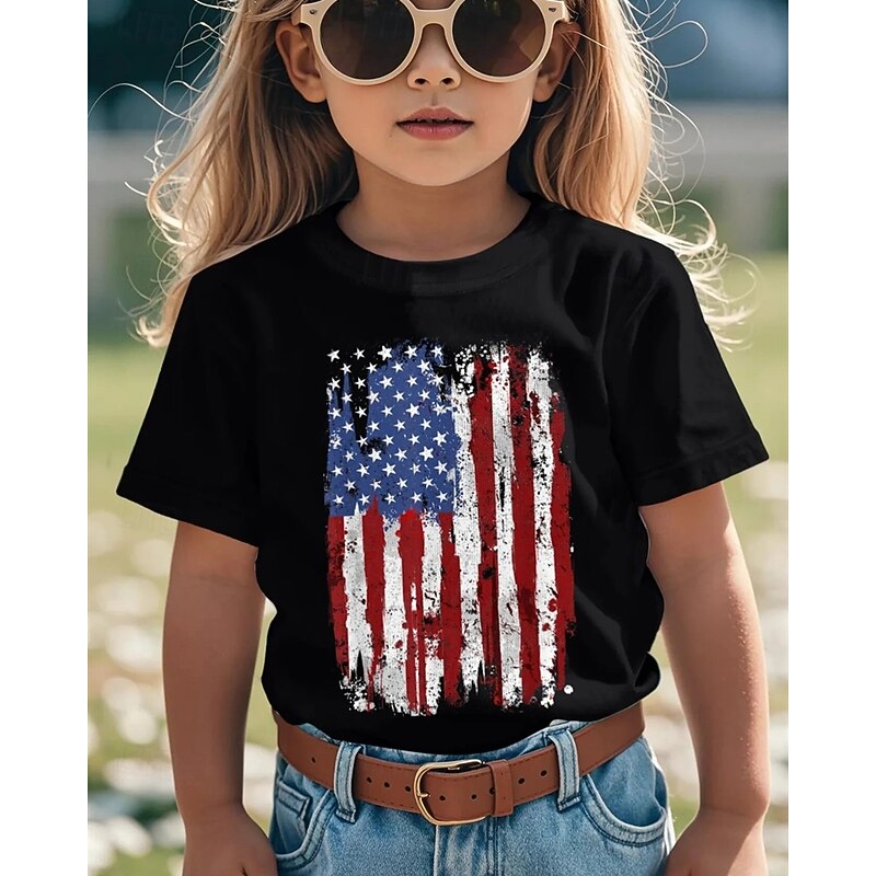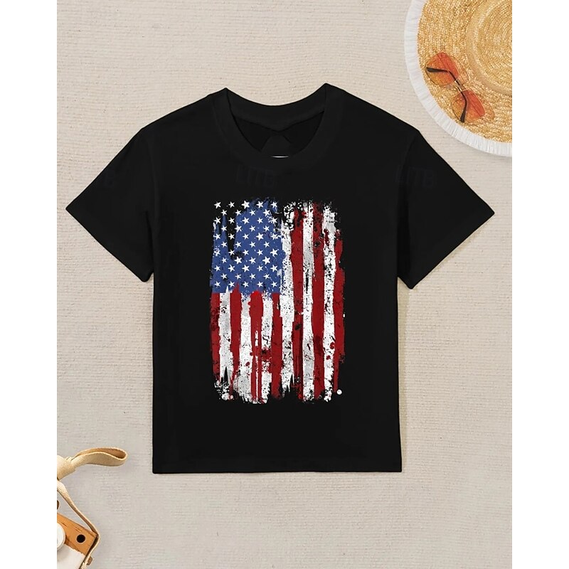 More information about 100% Cotton Kids Girls' Black White American Flag T shirt Tee Crew Neck Short Sleeve Outdoor Vacation Daily Classic Casual Print Summer