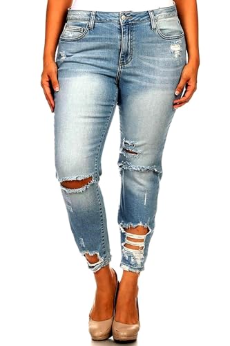 HOT ! Jack David Womens Plus Size Stretch Distressed Ripped Blue Skinny Denim Jeans